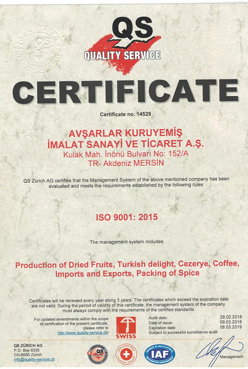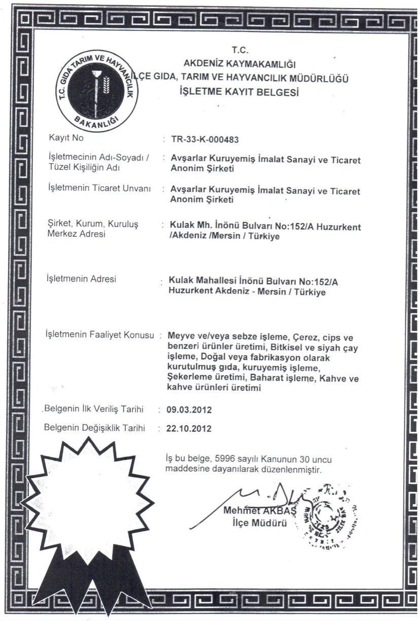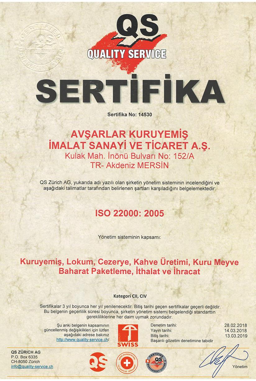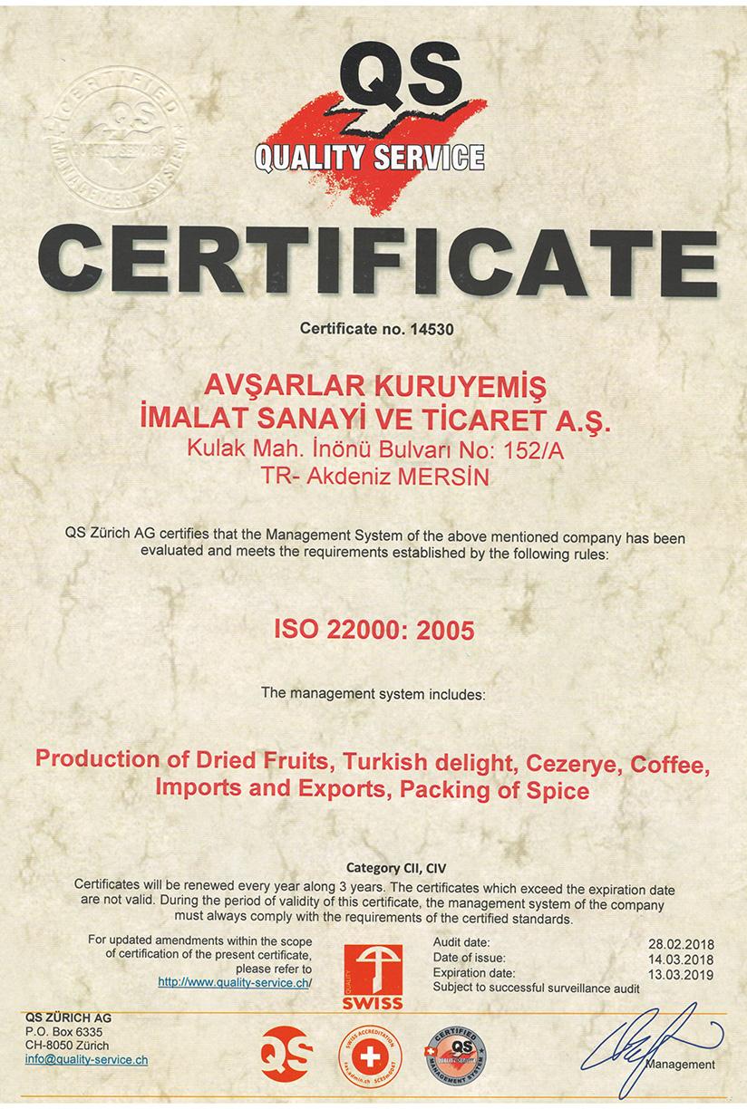 AvÅŸarlar имеет Ñертификаты по ÑиÑтеме Ñертификации ISO9001, ISO22000.