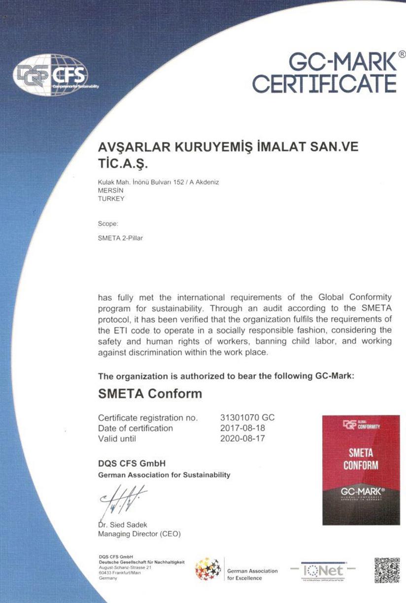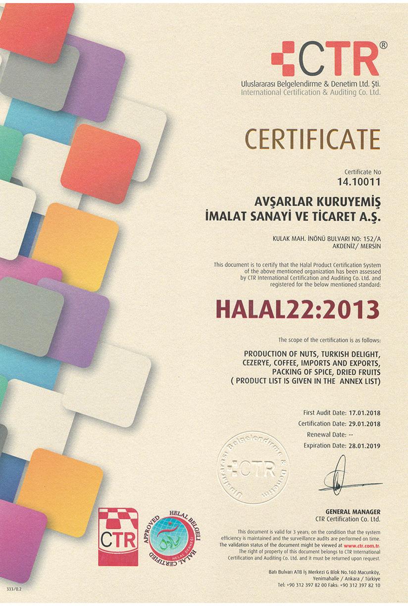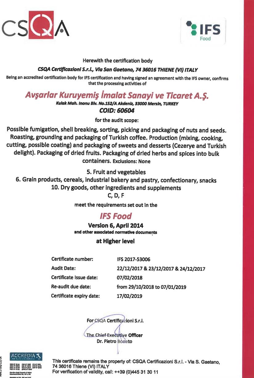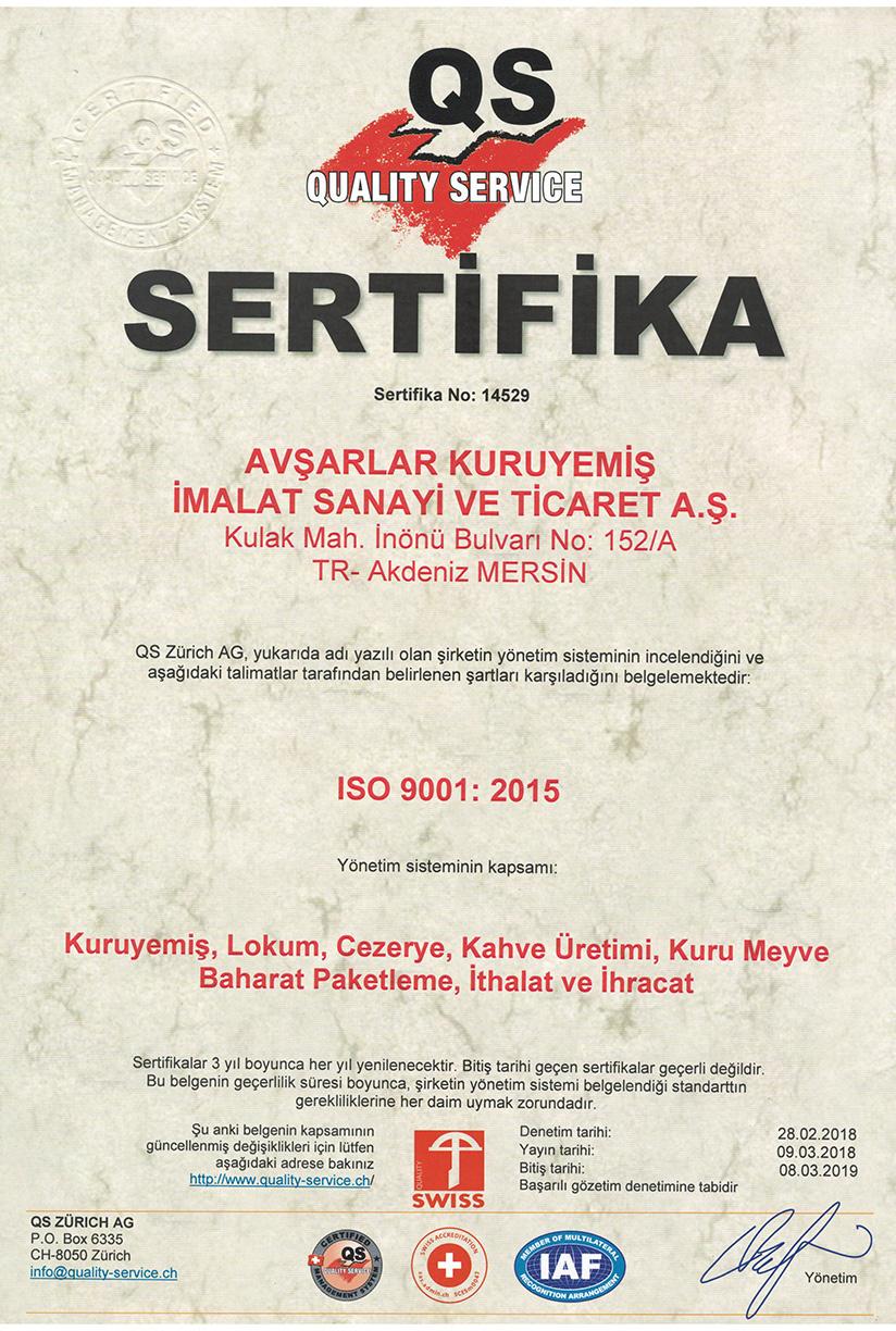 AvÅŸarlar имеет Ñертификаты по ÑиÑтеме Ñертификации ISO9001, ISO22000.